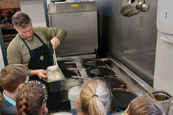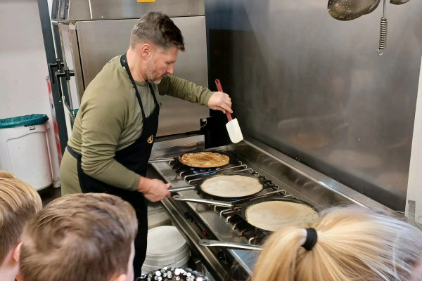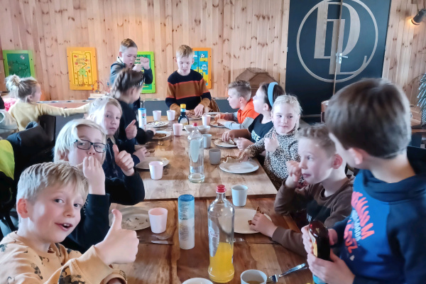 14-02-2024Afgelopen woensdag heeft groep 5 een bezoek gebracht aan restaurant 'de Lichtmis’. We werken met Blink (wereld oriëntatiemethode) over het wereldrestaurant. We hebben al veel geleerd over het eten in andere landen en over hoe al die verschillende ingrediënten/specerijen in ons land terecht zijn gekomen. En dan is het wel erg leuk om een kijkje in de keuken van een echt restaurant te nemen. Waar ze ook nog iets echt oer-Hollands maken. En wat was het leuk! We hebben geholpen met het maken van het beslag en even later mochten we zelf gaan smullen van de gemaakte pannenkoeken! Het testpanel van groep 5 was het unaniem eens; ze waren heerlijk! We willen dan ook Peter Huisman van restaurant 'de Lichtmis’ bedanken voor deze ontzettend leuke en lekkere morgen!